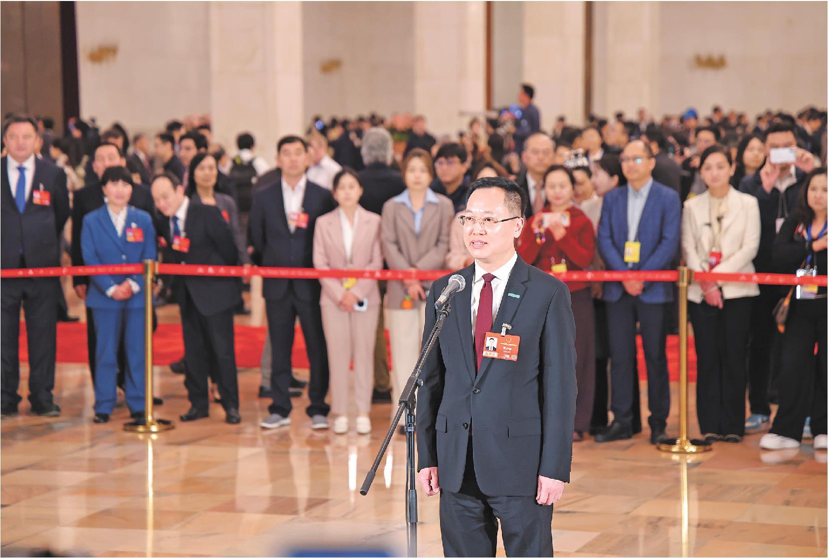 3月12日14时,十四届全国人大四次会议闭幕会前,人民大会堂中央大厅北侧,第三场“代表通道”集中采访活动正式开启。全国人大代表,海信集团控股股份有限公司党委书记、董事长贾少谦走上通道,接受中外记者采访。