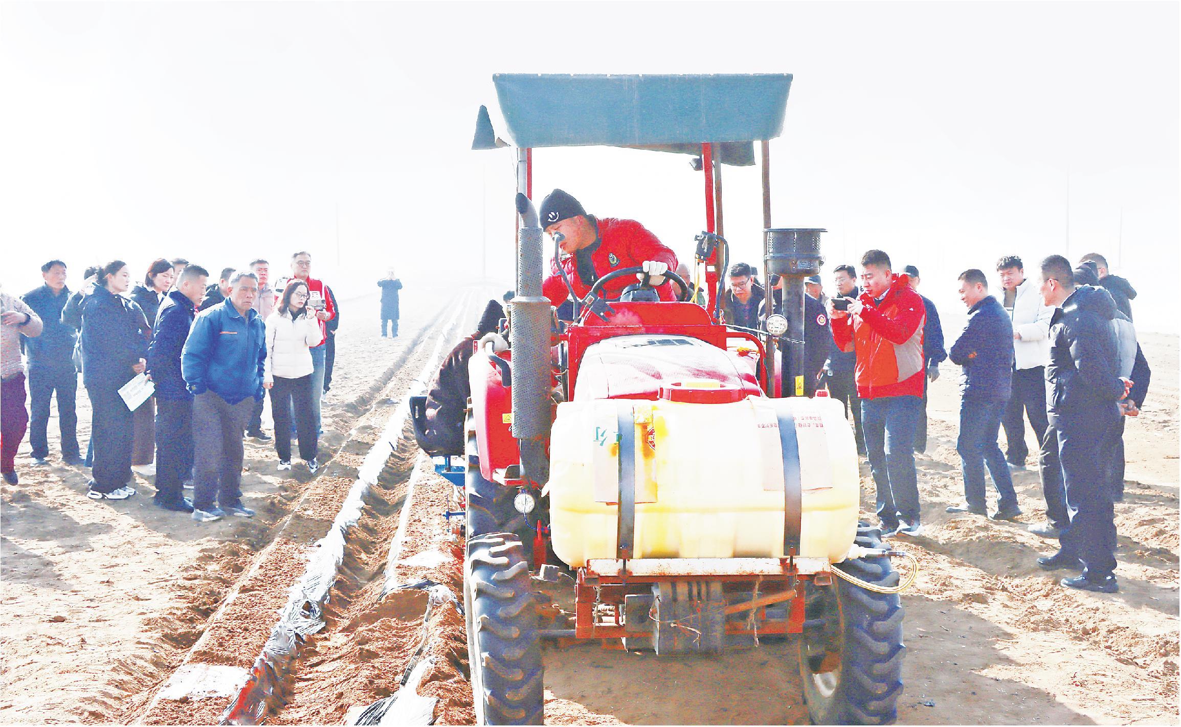 前不久,马铃薯机械化播种演示现场会在滕州市界河镇房岭村泓安马铃薯专业合作社基地举行,马铃薯多功能播种机现场作业,开沟、施肥、播种、喷药、覆膜等工序一气呵成。图为种植大户、农机合作社骨干等近距离学习机械操作技巧,并与专家现场交流探讨。