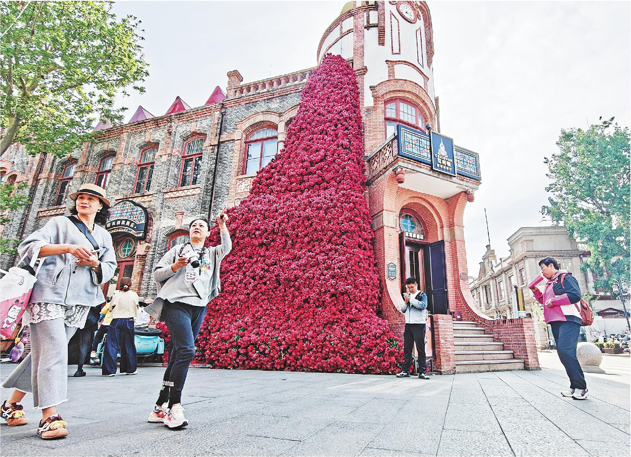 漫步朝阳街,葡萄酒、开瓶器、高脚杯等造型的景观随处可见,成为热门打卡点。“微醺烟台”文创店、“张裕微醺驿站”等特色小店吸引游客驻足。