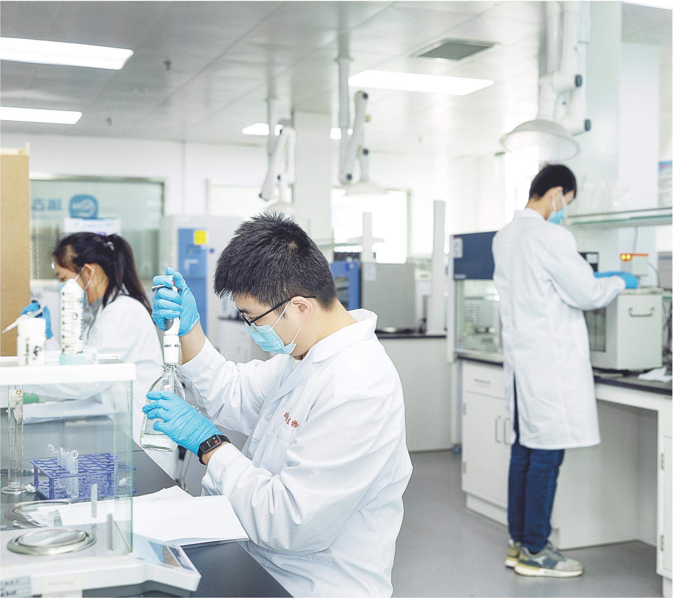 图为瑞吉明(山东)生物科技有限公司实验室内,工作人员正在做实验。