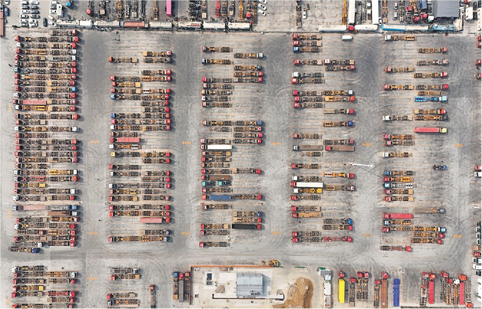 在青岛西海岸新区开投集卡中心,每天约有2000辆集装箱挂车进出这里,司机在这里休整、维修车辆等。