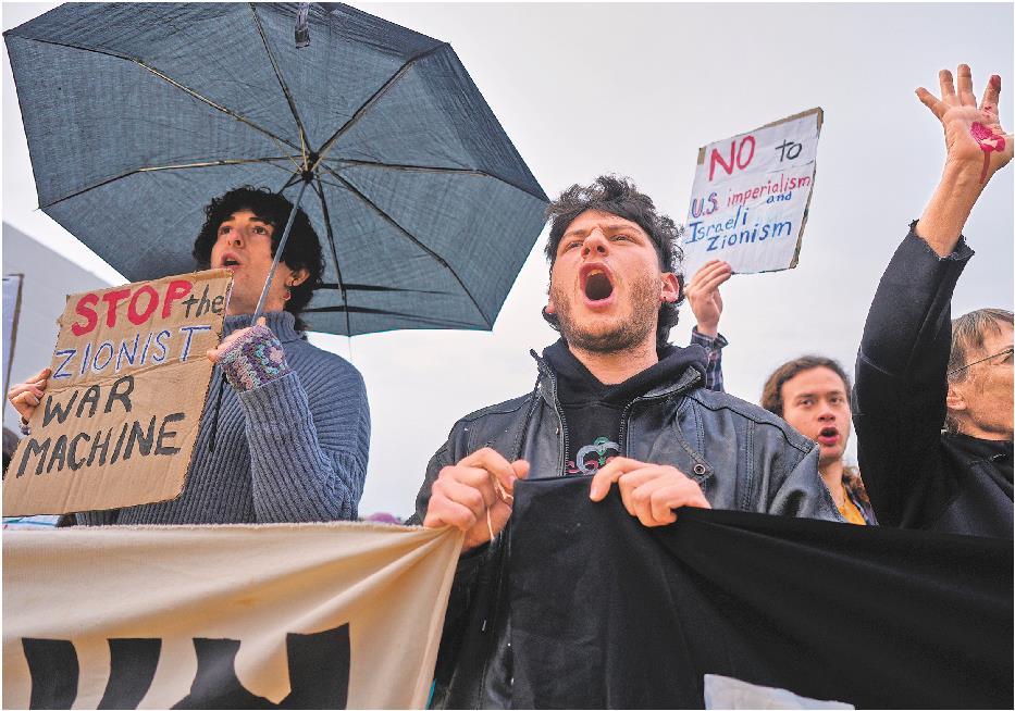 3月21日,人们在以色列特拉维夫参加集会,抗议美国和以色列对伊朗发动军事打击。(□新华社发)