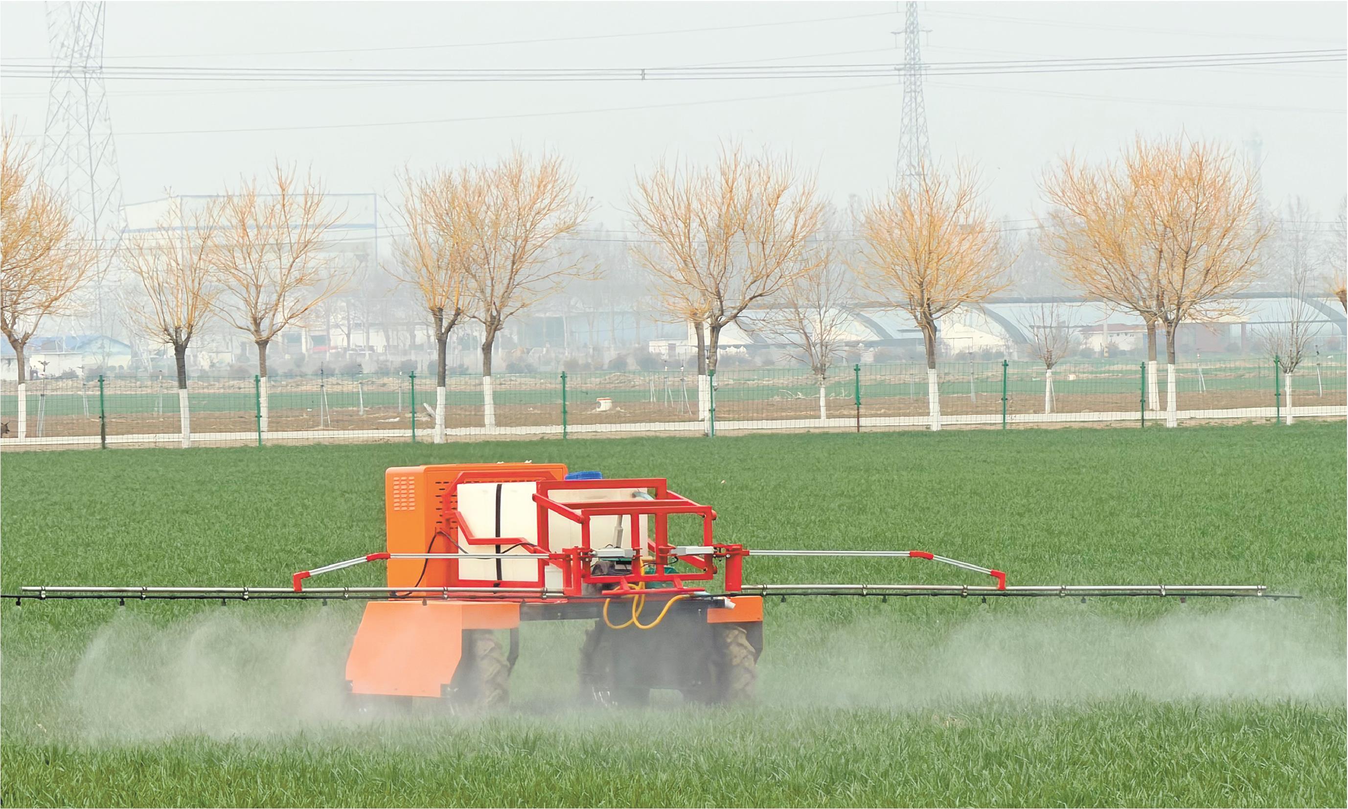 近日,在安驾庄镇洼里村无人智慧农场里,机器人正在进行田间作业。