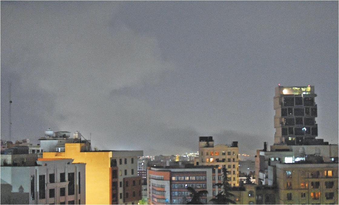 3月23日凌晨,在伊朗首都德黑兰拍摄的爆炸产生的浓烟。(□新华社发)
