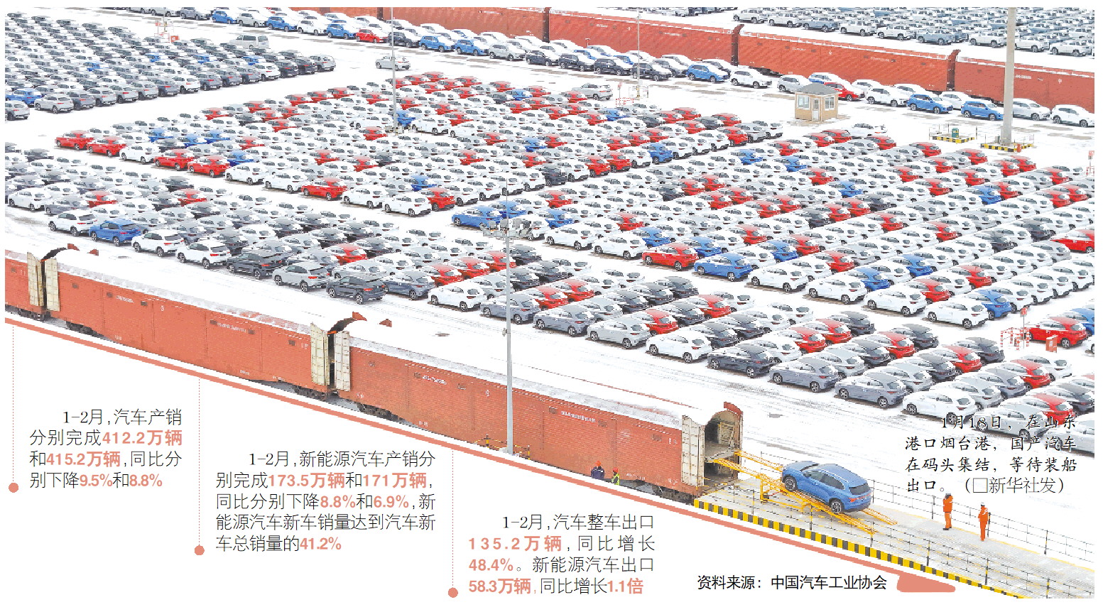 2026年开年,中国汽车市场遭遇阶段性“倒春寒”。中国汽车工业协会(以下简称“中汽协”)最新数据显示,1至2月全国汽车产销同比分别下降9.5%和8.8%,出现近年来较为罕见的开局跌幅。这一承压态势既受春节长假等季节性因素的短期扰动影响,亦是新能源购置税减半政策切换、去年底促销透支需求以及存量博弈加剧的综合结果。