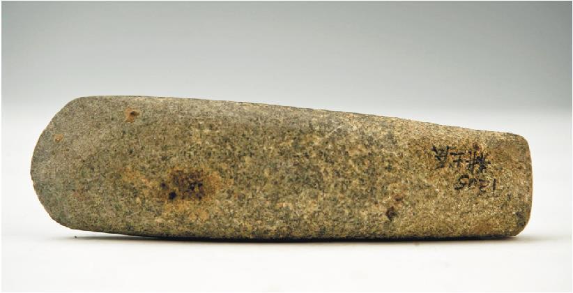 石斧是新石器时代代表农具之一,是古人的“开荒利器”,可以用来砍伐植物,为平整土地作准备,当时的石斧以长方形和梯形为主,较为厚重,这种宽厚的外形,也可以增大冲击力,避免斧刃损坏。