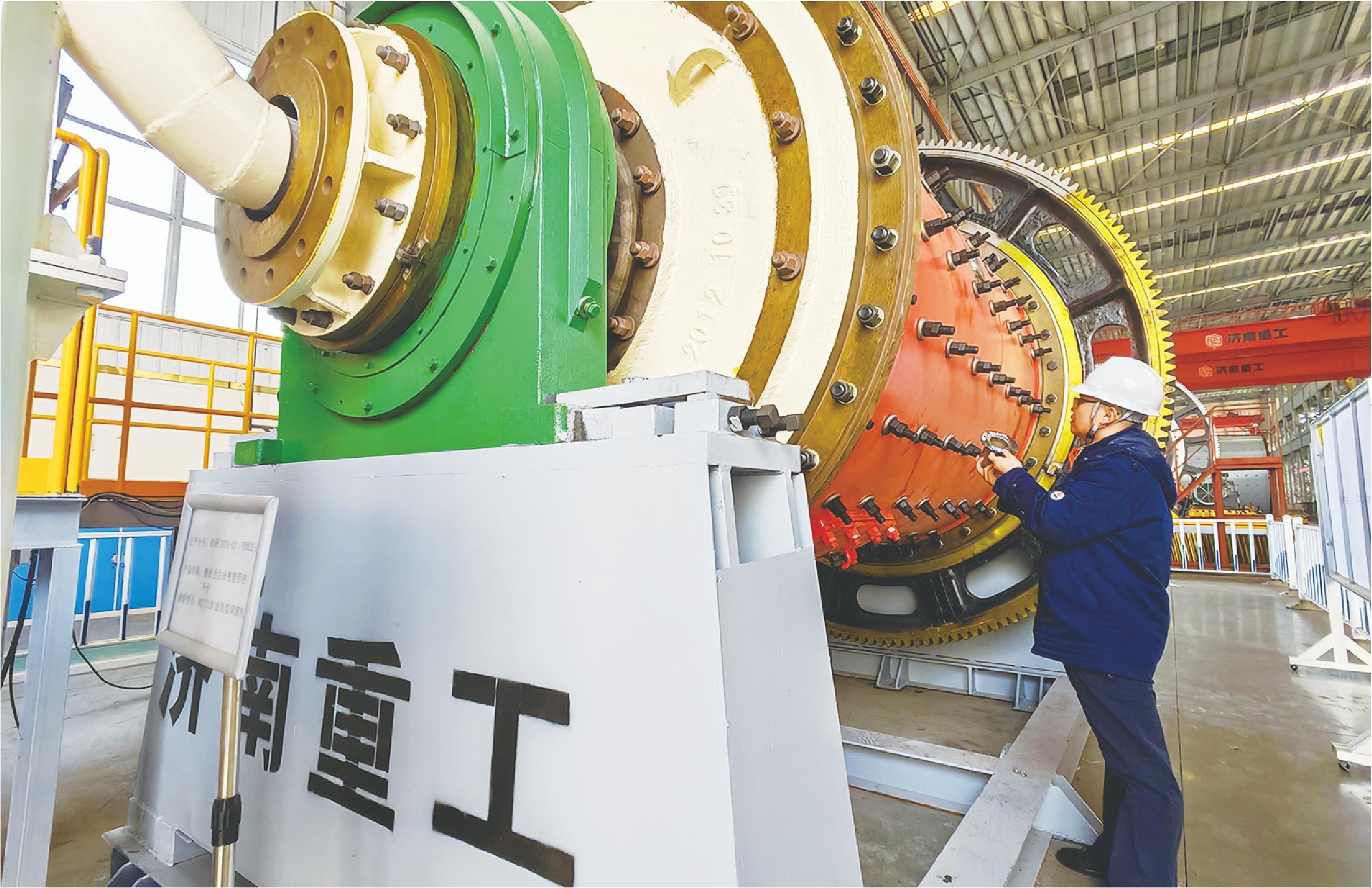 济南重工工程师陈守欢查看数智磨机中试平台的传感器。