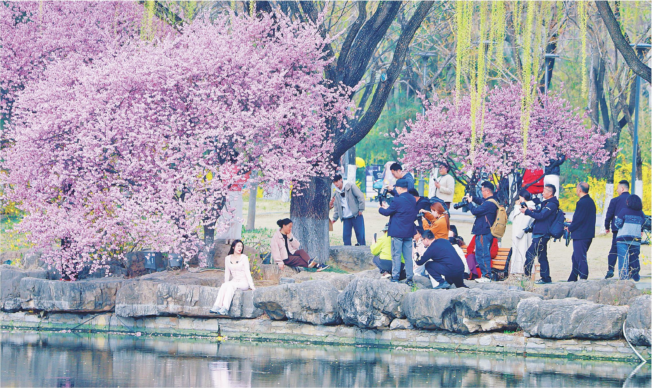 春风送暖,临沂五洲湖公园内繁花盛开,景色宜人。市民纷纷前来踏青赏花、拍照打卡,陶醉于春日美景。