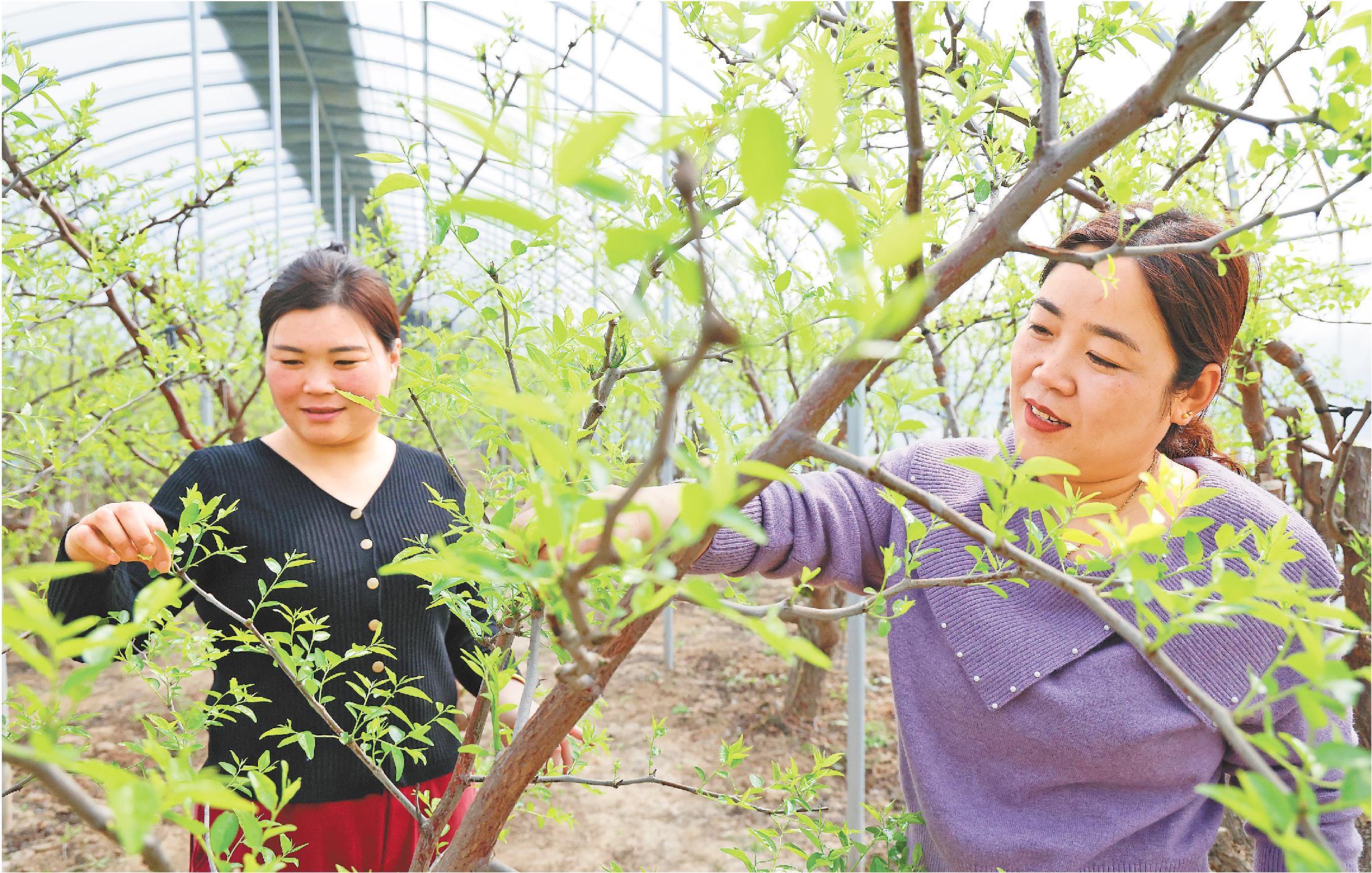 时下,在滨州市沾化区下洼镇北陈村棉被棚内,棚内冬枣树绿叶满枝,长势喜人。枣农正抢抓农时开展掐芽、剪枝、浇水等春季管护工作,一派繁忙景象,为今年冬枣提质增产打下坚实基础。