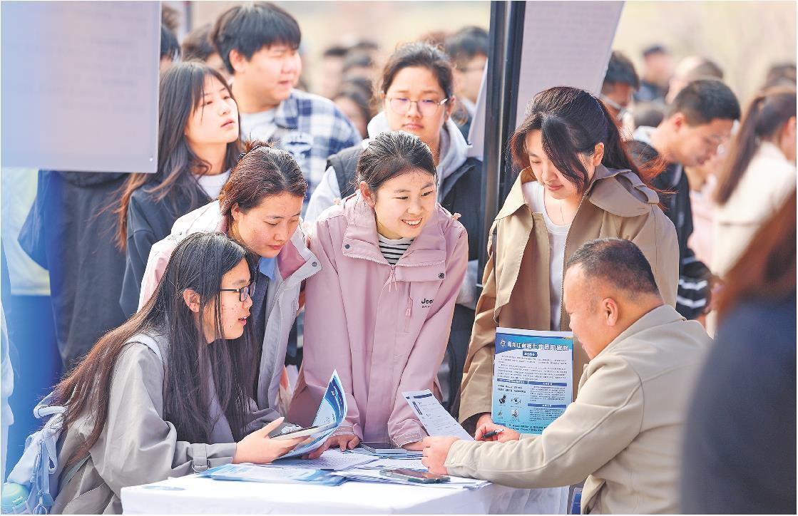 3月27日,求职者在河北地质大学专场招聘活动现场与企业代表交流。当日,全国工商联、教育部、人力资源社会保障部、退役军人事务部在河北石家庄市举办2026年度全国“百城千校万企”促就业行动动员部署会暨京津冀地区专场招聘活动。(□新华社发)