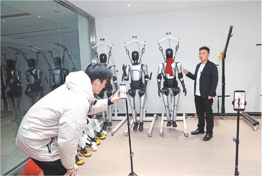 2025年春节以来,人形机器人租赁市场持续火爆。今年春节,山东各地机器人租赁公司订单排满。位于临沂市兰山区的多米智航(山东)电子科技有限公司(简称多米公司)。30台人形机器人和18名员工一直开足马力,加班成为常态,他们服务北京地坛公园庙会、哈尔滨冰雪大世界、菏泽水浒好汉城等景区和众多商场、企业的推介活动,还在临沂当地的民俗展演活动上配合群众演员扭秧歌。