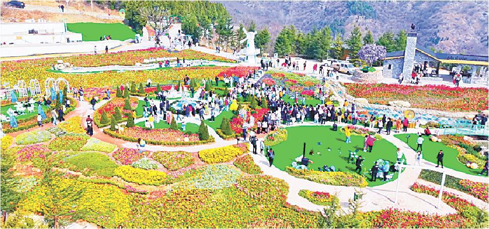 近日,淄博红叶柿岩旅游区“云崖花园”开放,位于悬崖之上,总面积8000平方米,汇聚20多个品种上百万株郁金香,吸引大批游客前来打卡。