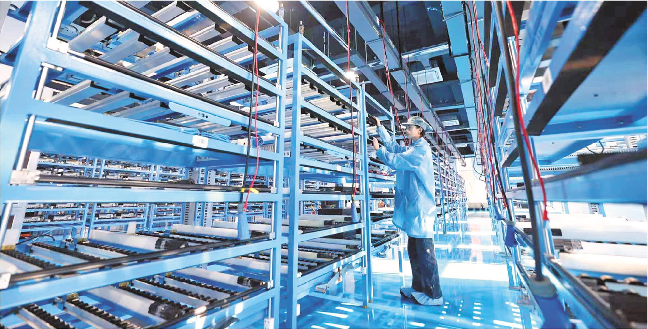 3月30日,在浪潮聊城智能生产基地,工作人员正在生产线上巡检。