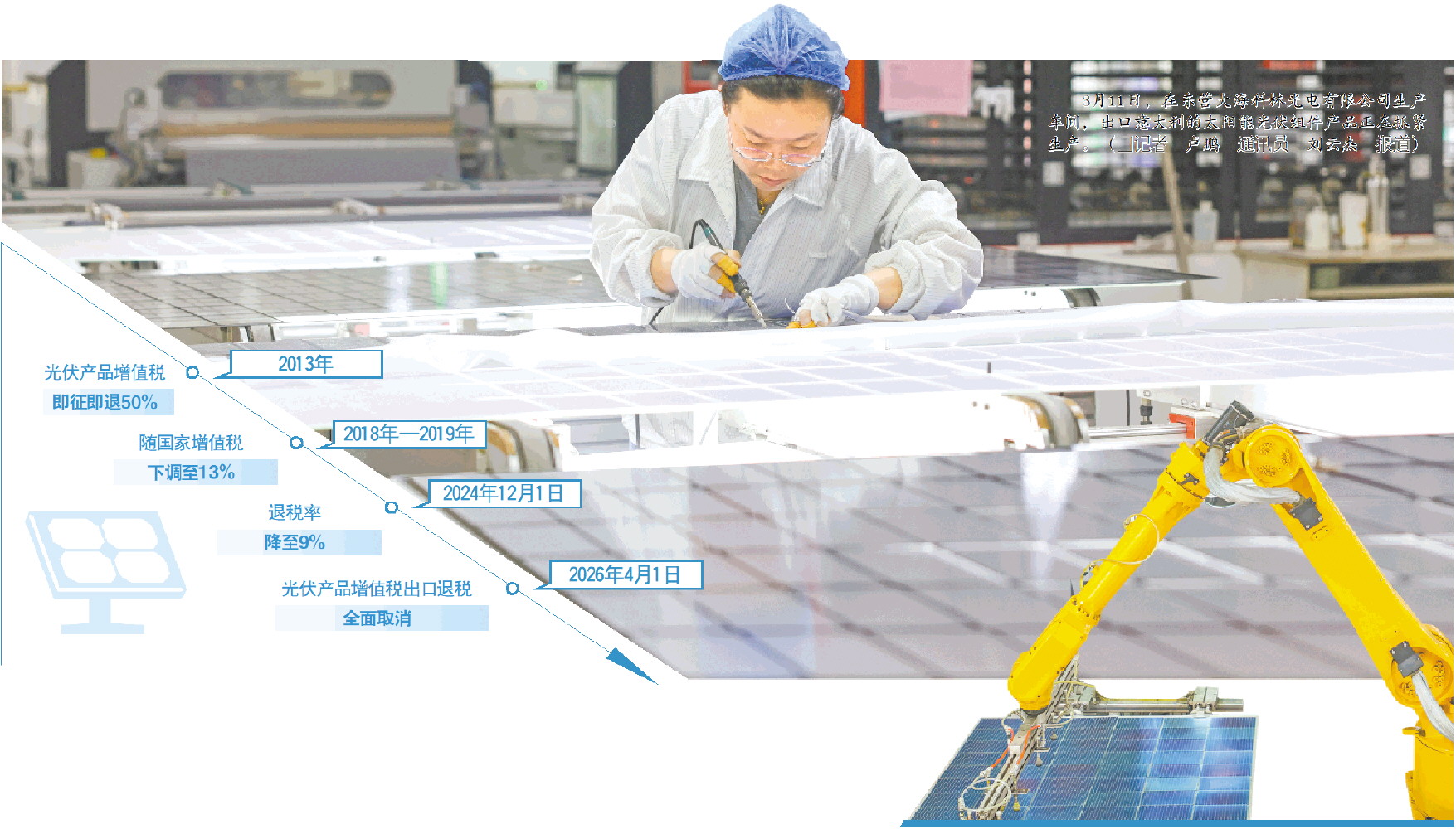 根据财政部和国家税务总局联合发布的公告,2026年4月1日起,光伏等产品增值税出口退税全面取消,过去十余年支撑中国光伏征战全球的“退税红利”彻底归零。