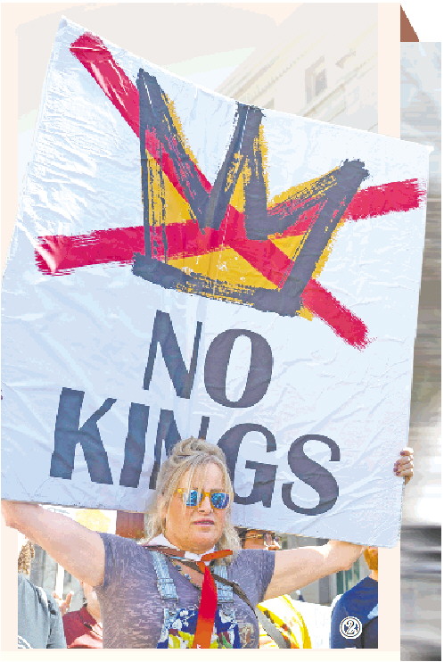 图②:3月28日,人们在美国加利福尼亚州旧金山参加“不要国王”抗议活动,呼吁结束对伊朗的军事打击。