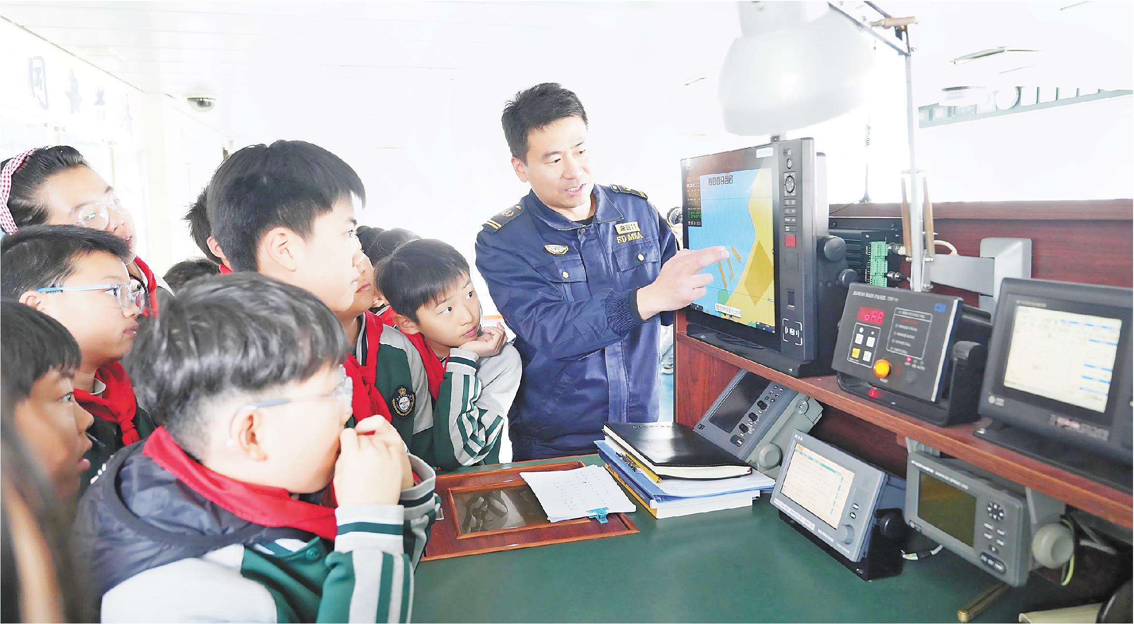 3月27日,交通运输部北海航海保障中心青岛航标处联合青岛海事局,依托“海巡11”轮这一海上移动教育基地,共同举办“守护蔚蓝,安全同行”主题实践活动,进行防溺水安全教育、参观“海巡11”驾驶室、甲板实训、急救知识学习等,增强青少年水上安全意识,普及防溺水知识,提升海上遇险自救与逃生能力。