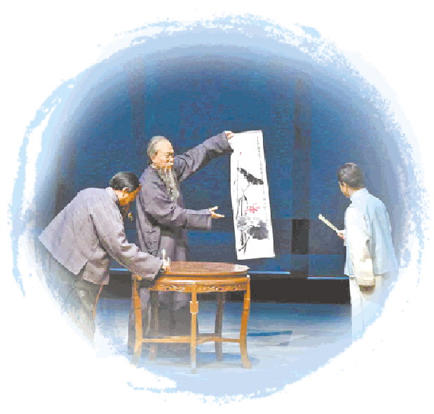 《齐白石》用兼具艺术性与观赏性的表达,证明了新编戏可“守正不僵化,创新不离谱”,其摒弃了“生平流水账”模式,以齐白石“衰年变法”为核心,聚焦其从“谋食”到“谋道”的精神突围,用七场戏串联起他在陈师曾点拨、梅兰芳砥砺下,挣脱世俗非议与内心困顿,最终形成“红花墨叶”独特画风的过程。这种“以小见大”的叙事,让有血有肉、有挣扎有坚守的艺术家形象在舞台上鲜活起来。