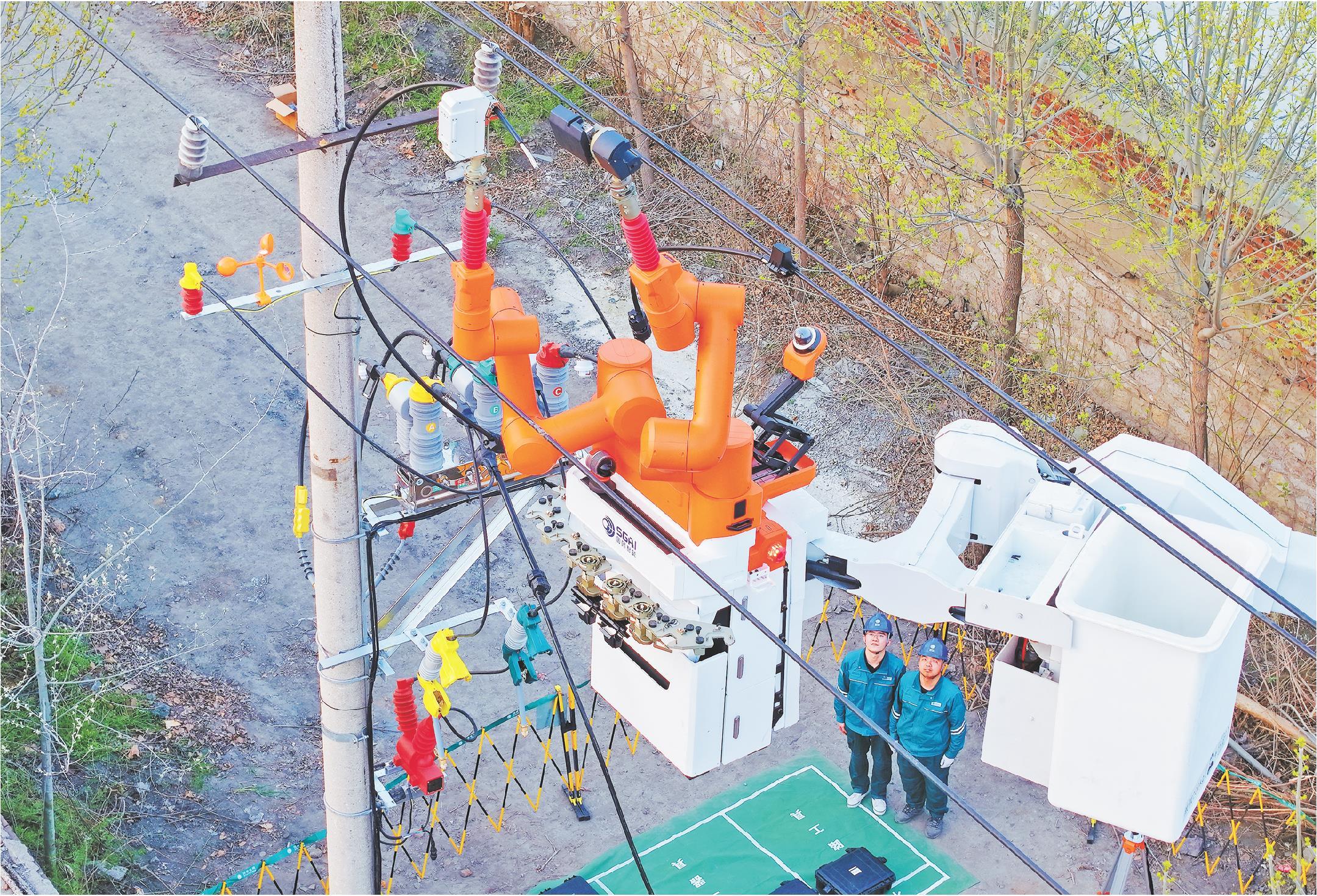 3月27日,国网济宁供电公司在兖州区10千伏北站线,成功完成国网山东省电力公司自主研发的重载机器人全国首次带电接火作业。