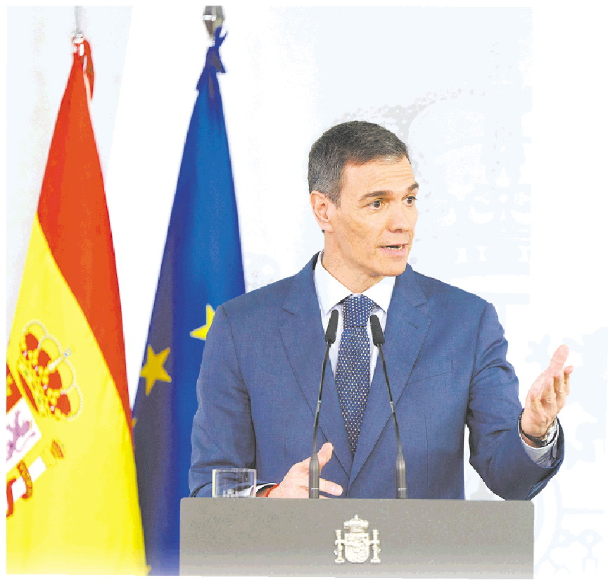 3月20日,西班牙首相佩德罗·桑切斯在西班牙马德里一场新闻发布会上讲话。(□新华社发)