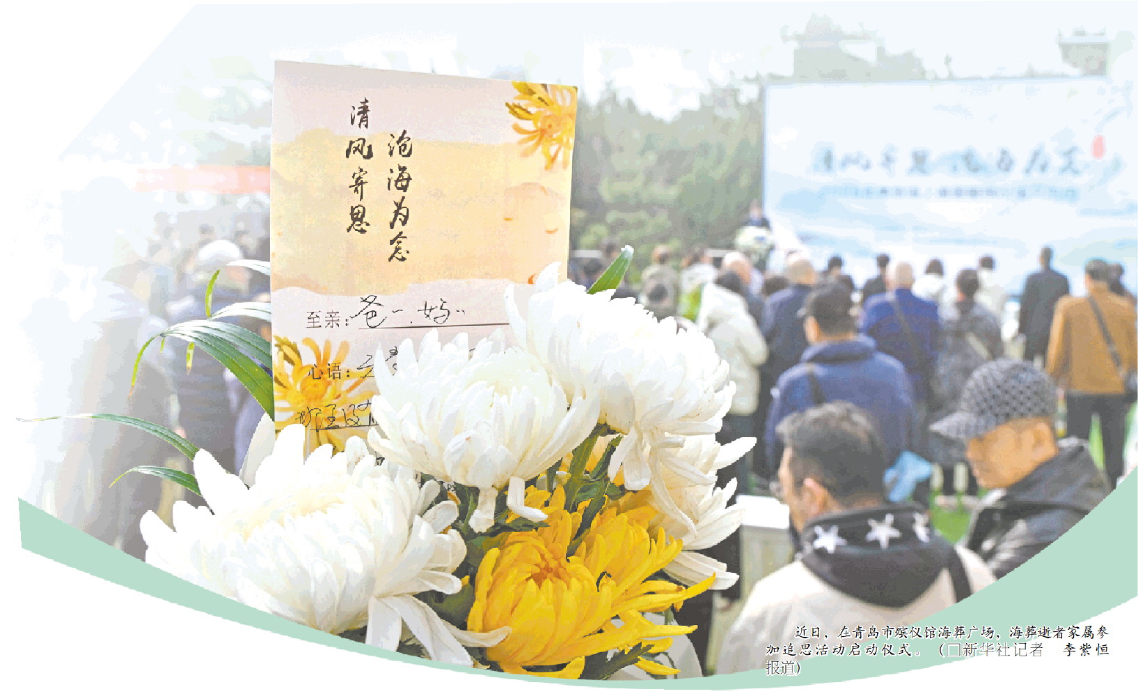 近日,在青岛市殡仪馆海葬广场,海葬逝者家属参加追思活动启动仪式。(□新华社记者 李紫恒 报道)