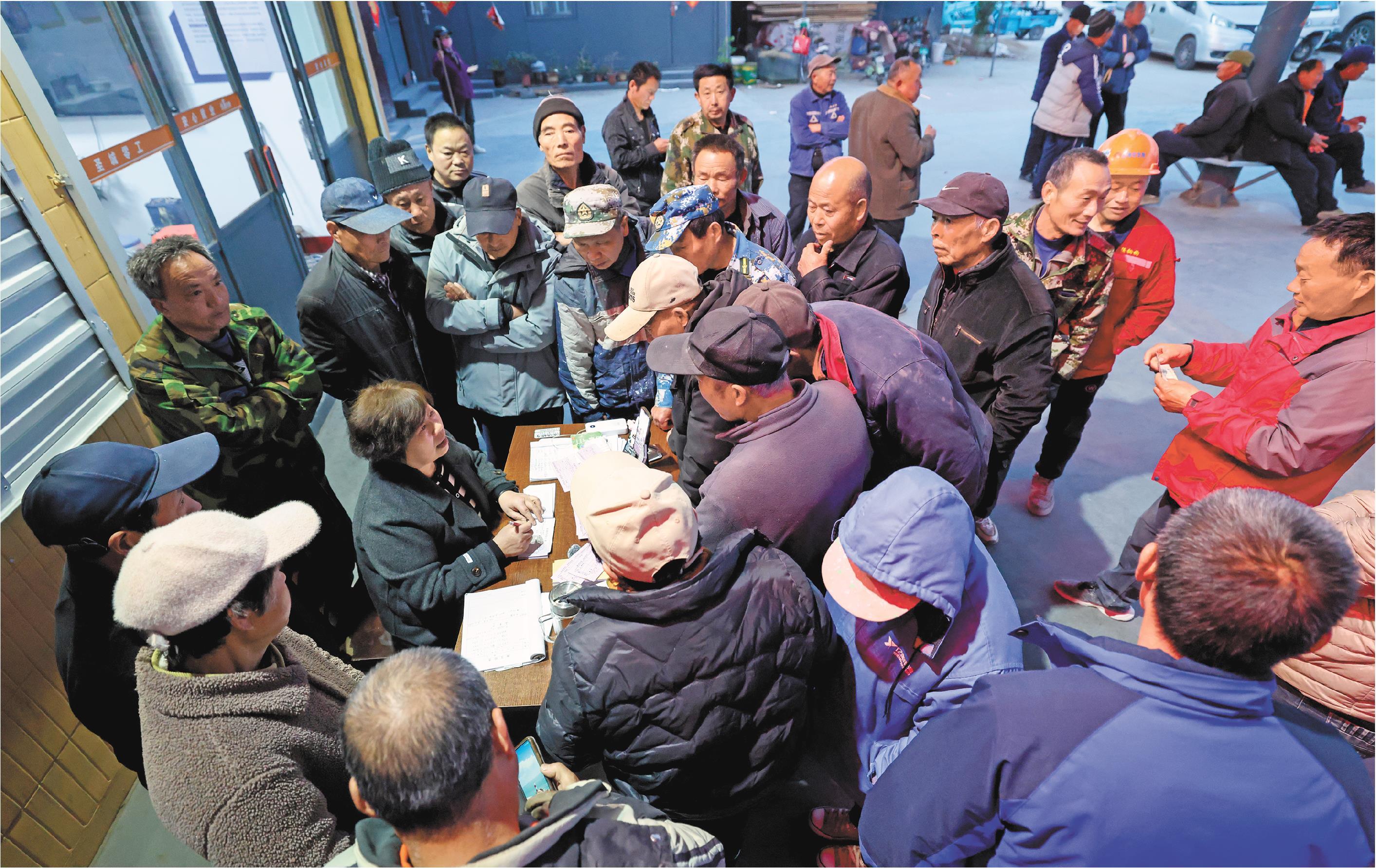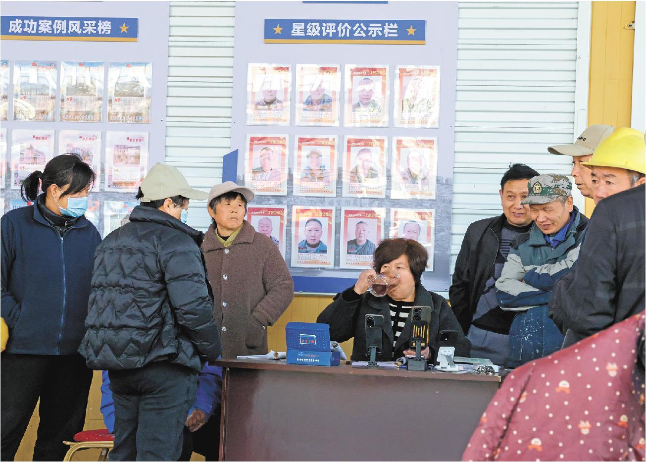 每天,四部手机轮番响个不停,张宪娟忙着接打电话、直播招工,一刻不得闲。务工人员张师傅说:“在这里找活很省心,花两元钱,就能踏实挣一天钱。”