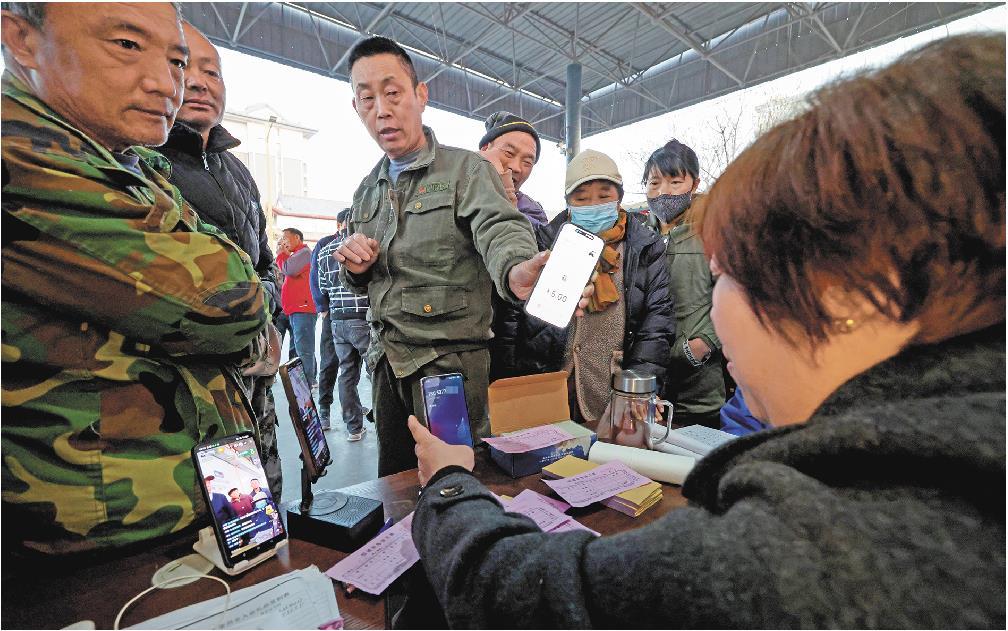 3月27日,在曲阜恒通劳务市场,工友付款5元后出示手机信息,张宪娟忙着打电话,顾不上抬头看。