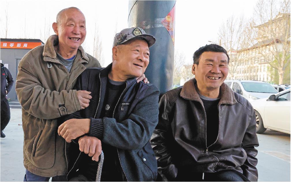 3月27日,曲阜恒通劳务市场,工友们在等活间隙聚在一起,有说有笑。