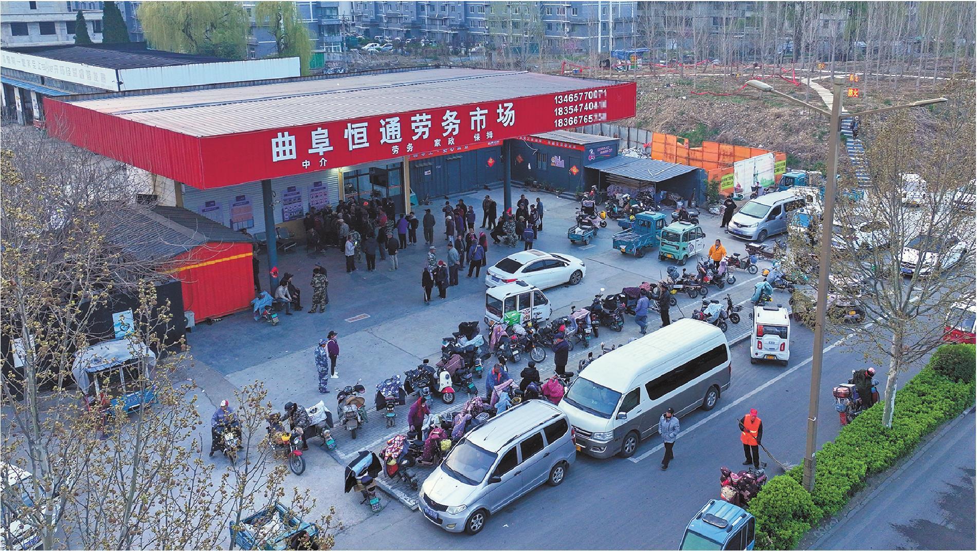 3月27日清晨五点多,天刚蒙蒙亮,曲阜恒通劳务市场就热闹起来。不少务工人员早早赶来,围在一处工位前,等着找当天的零工,在这里,花两块钱就能对接一份活,成了大家的共识。