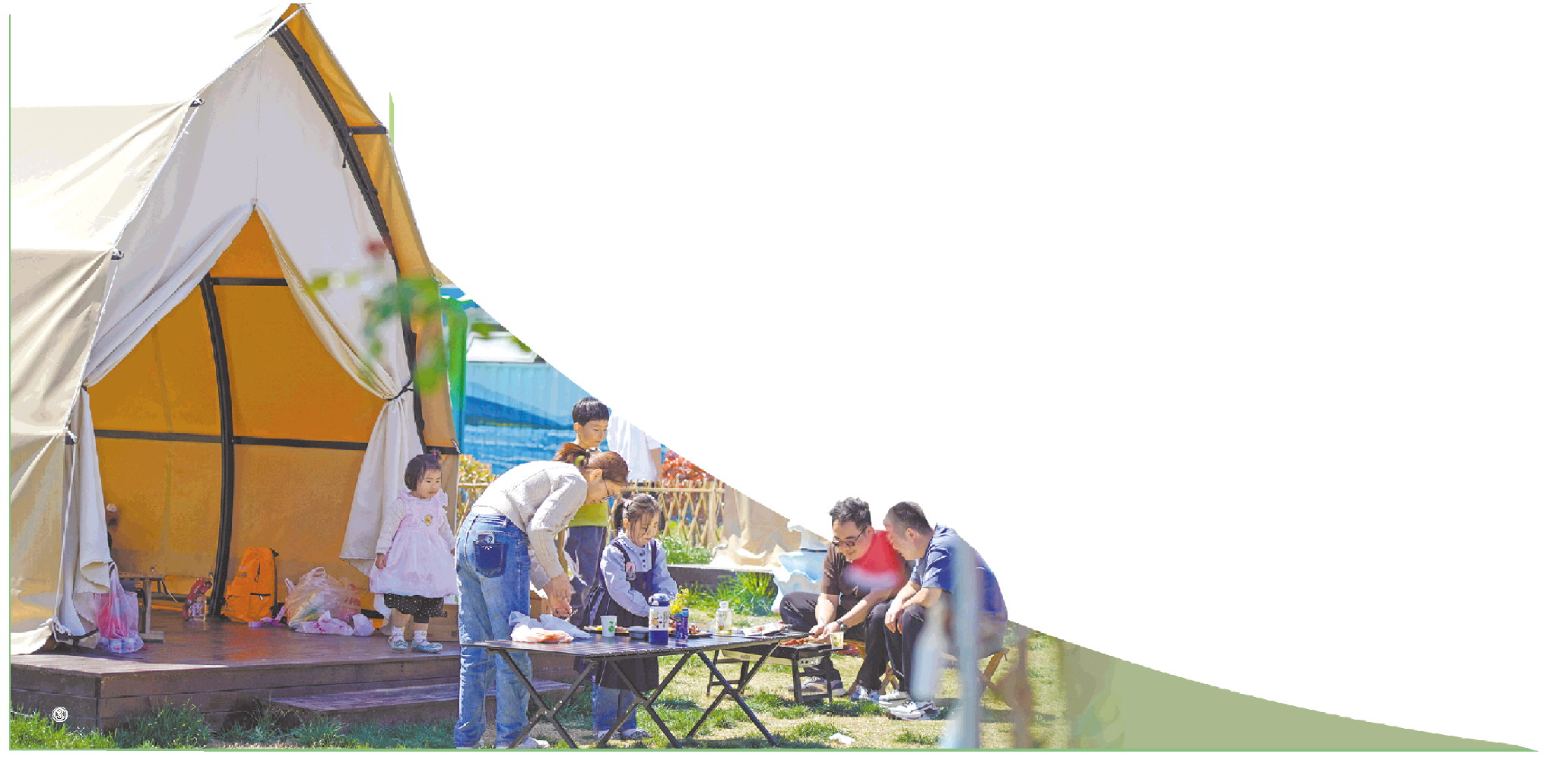 4月4日,游客在滕州市龙阳镇“龙湖月色”省级乡村振兴齐鲁样板片区内露营休闲。(□新华社记者 朱峥 报道)