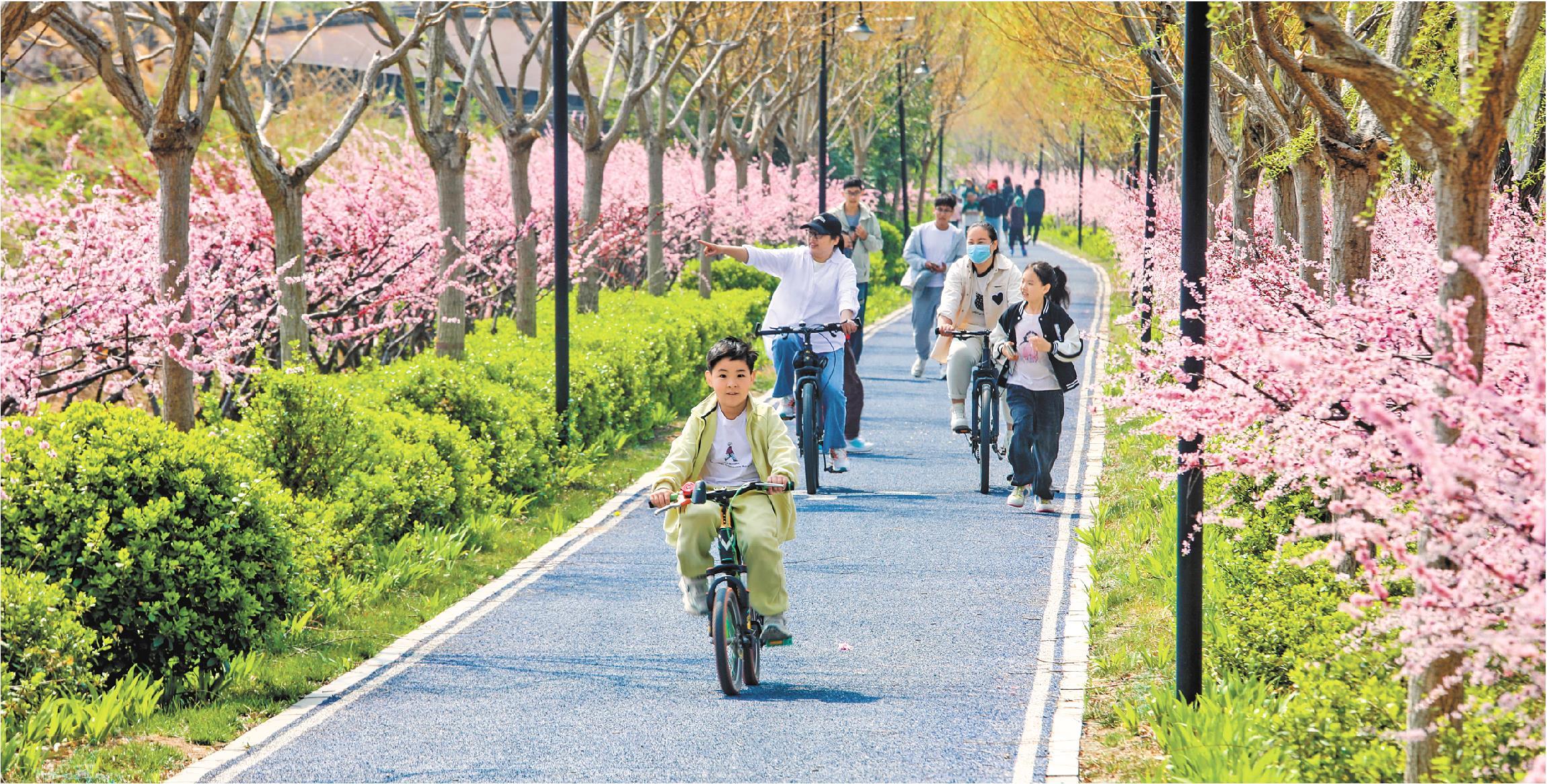 乐陵市冀鲁边湿地公园春意浓浓,不少市民前来赏花踏春、健身骑行、拍照打卡,乐享春日美好时光。