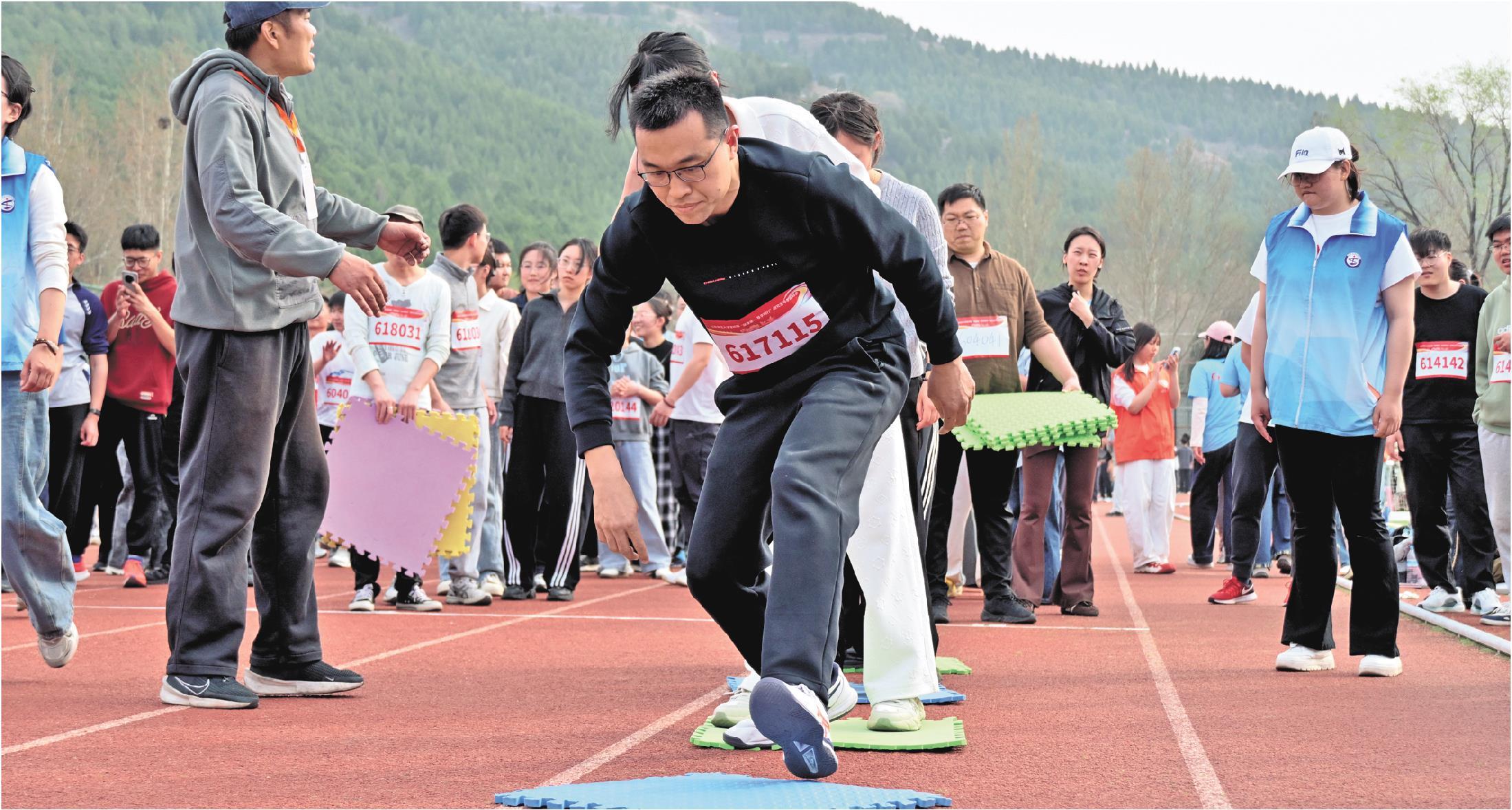 3月27日,山东师范大学举办第四届研究生导学运动会。赛场上,教师与学生共同参与“搭桥过河”趣味项目,大家默契配合、稳步前行。赛场外,呐喊助威声此起彼伏,共同绘就了一幅师生同心、活力满满的校园运动图景。
