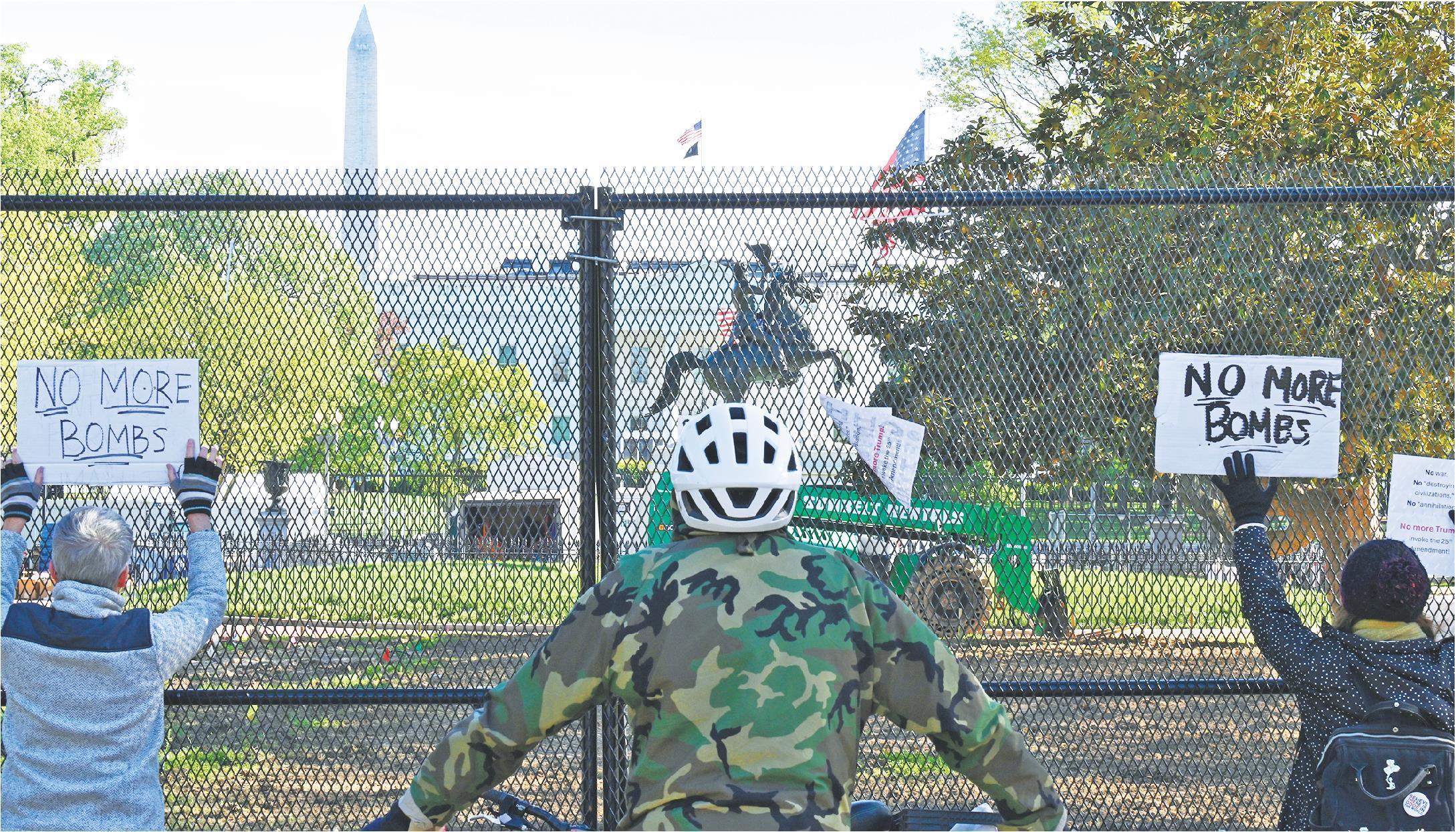 4月7日,人们在美国首都华盛顿的白宫前示威。