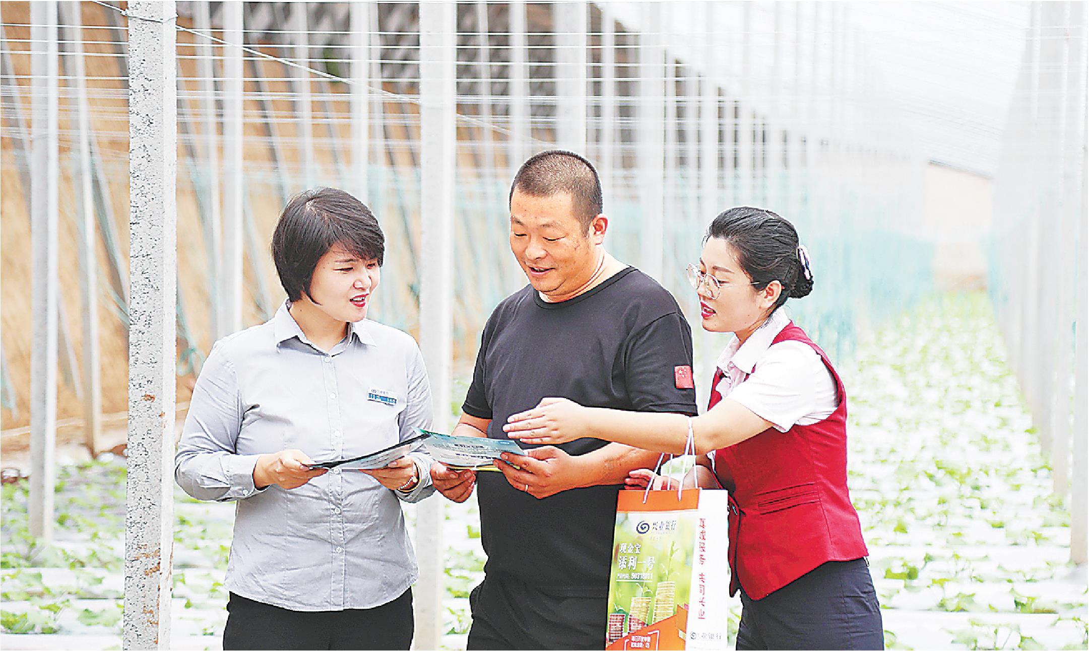 兴业银行济南分行工作人员走进大棚,向农户讲解适配的普惠金融服务。