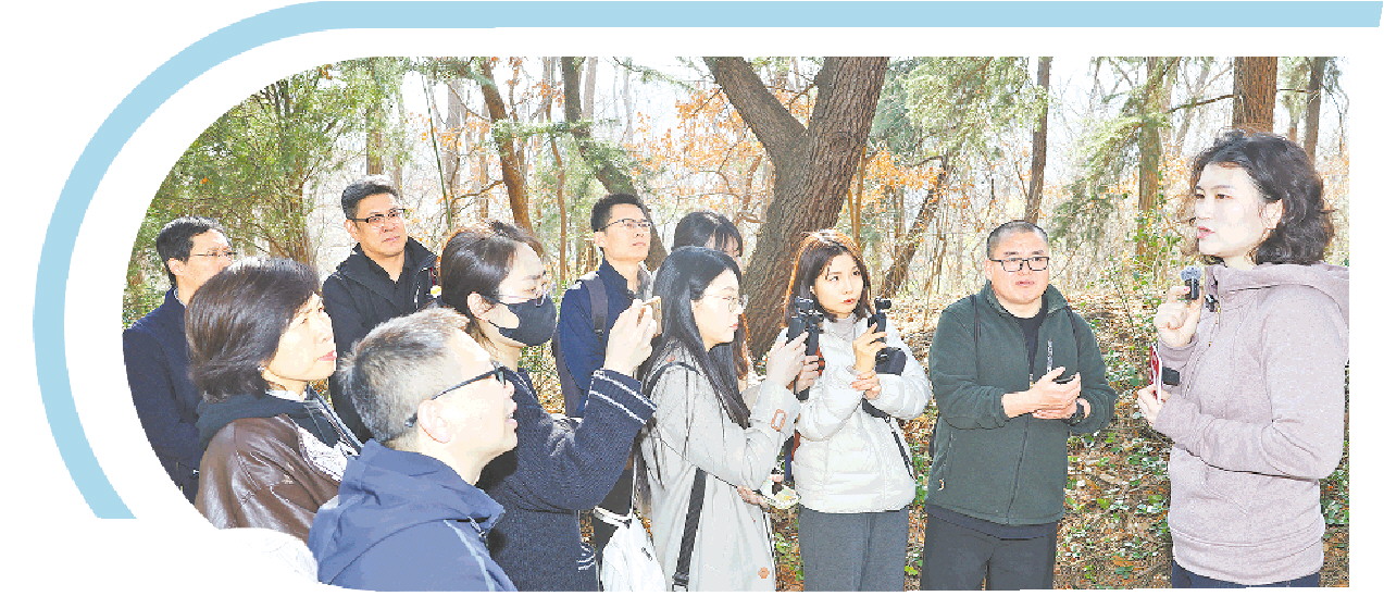 记者团队在天福山采访张玉华将军外孙女郭然。(□记者 卢鹏 报道)