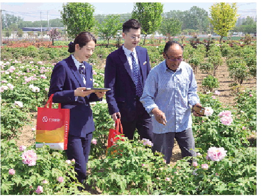 菏泽农商银行工作人员走访牡丹花卉种植户,为其提供金融服务