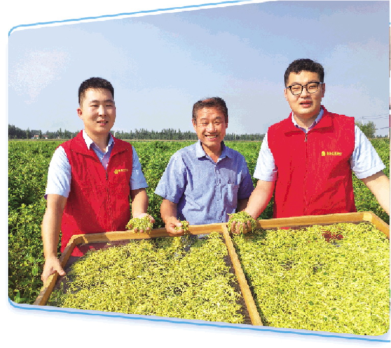 临邑农商银行工作人员与金银花种植户一起庆祝丰收