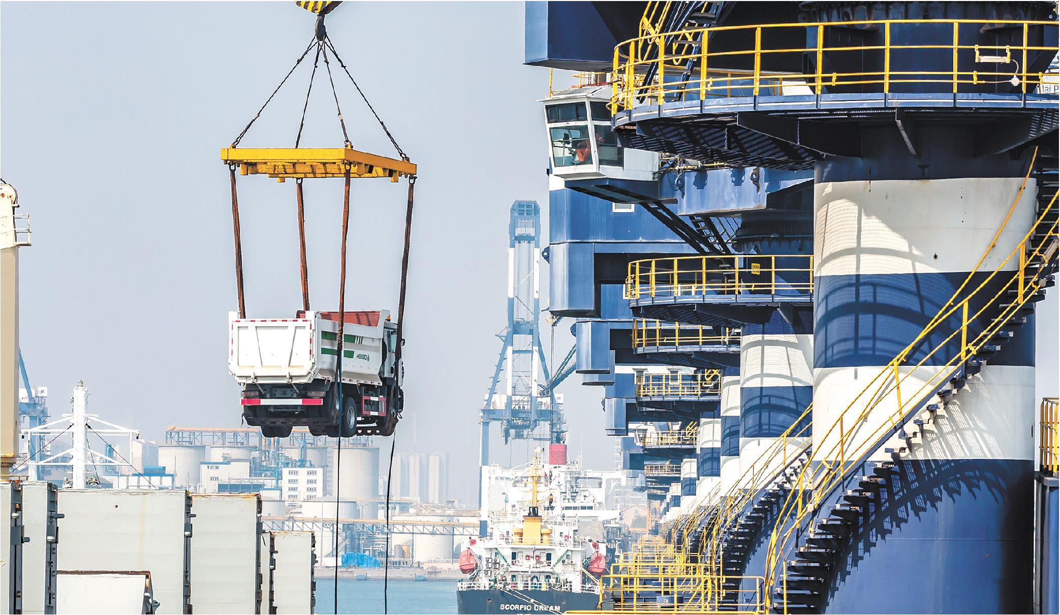 近日,货车、油罐车、混凝土搅拌车等车辆在烟台港陆续装船,准备出口非洲。今年一季度,烟台港中非件杂货班轮航线发运量突破200万吨,同比增长31.9%,运输货种高度契合非洲国家基建和民生需求。