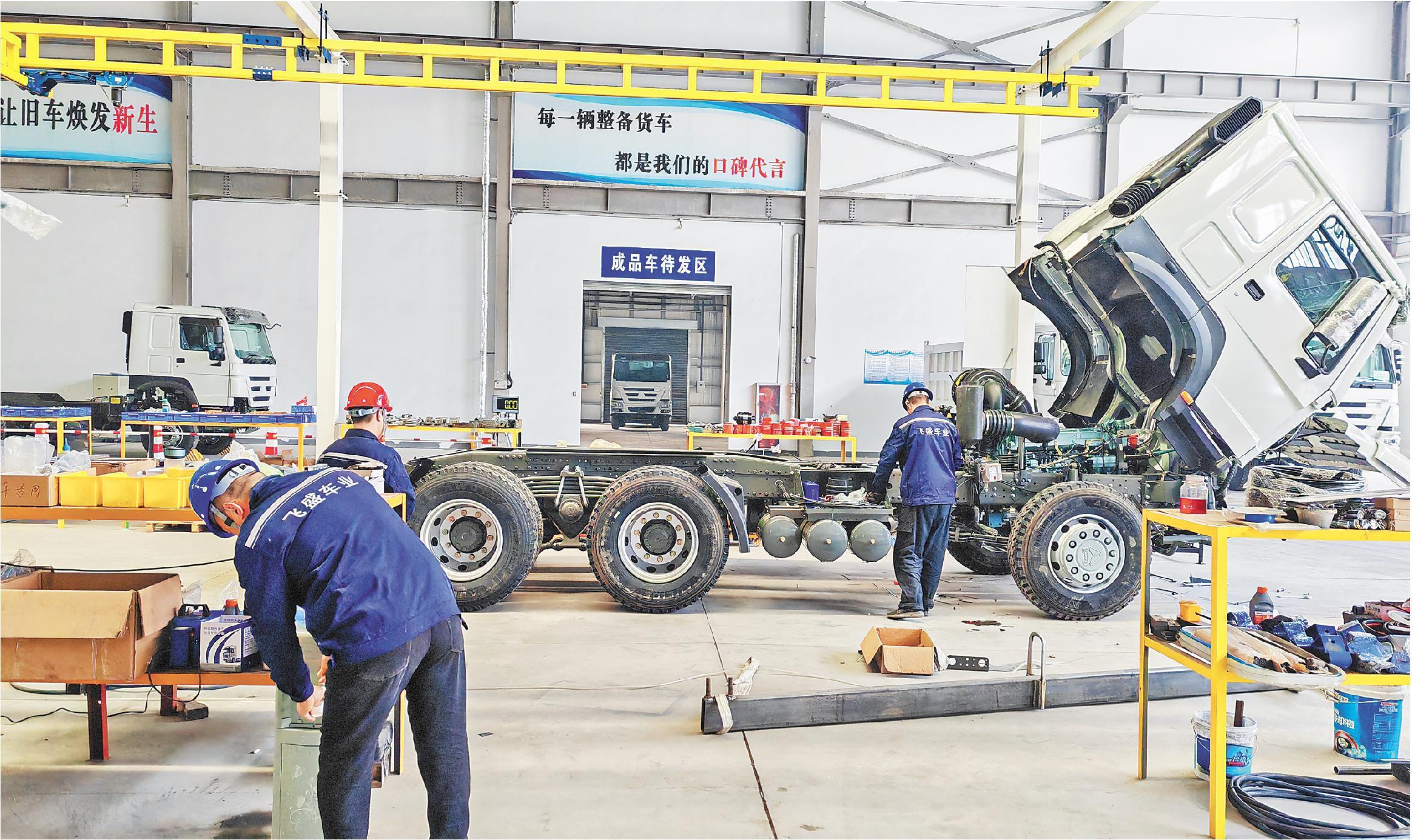 日前,记者来到武城经开区二手车出口基地的整备车间,工人们正忙着对回收的二手商用车进行检修、翻新,打磨、喷漆、更换零部件等,繁忙而有序。