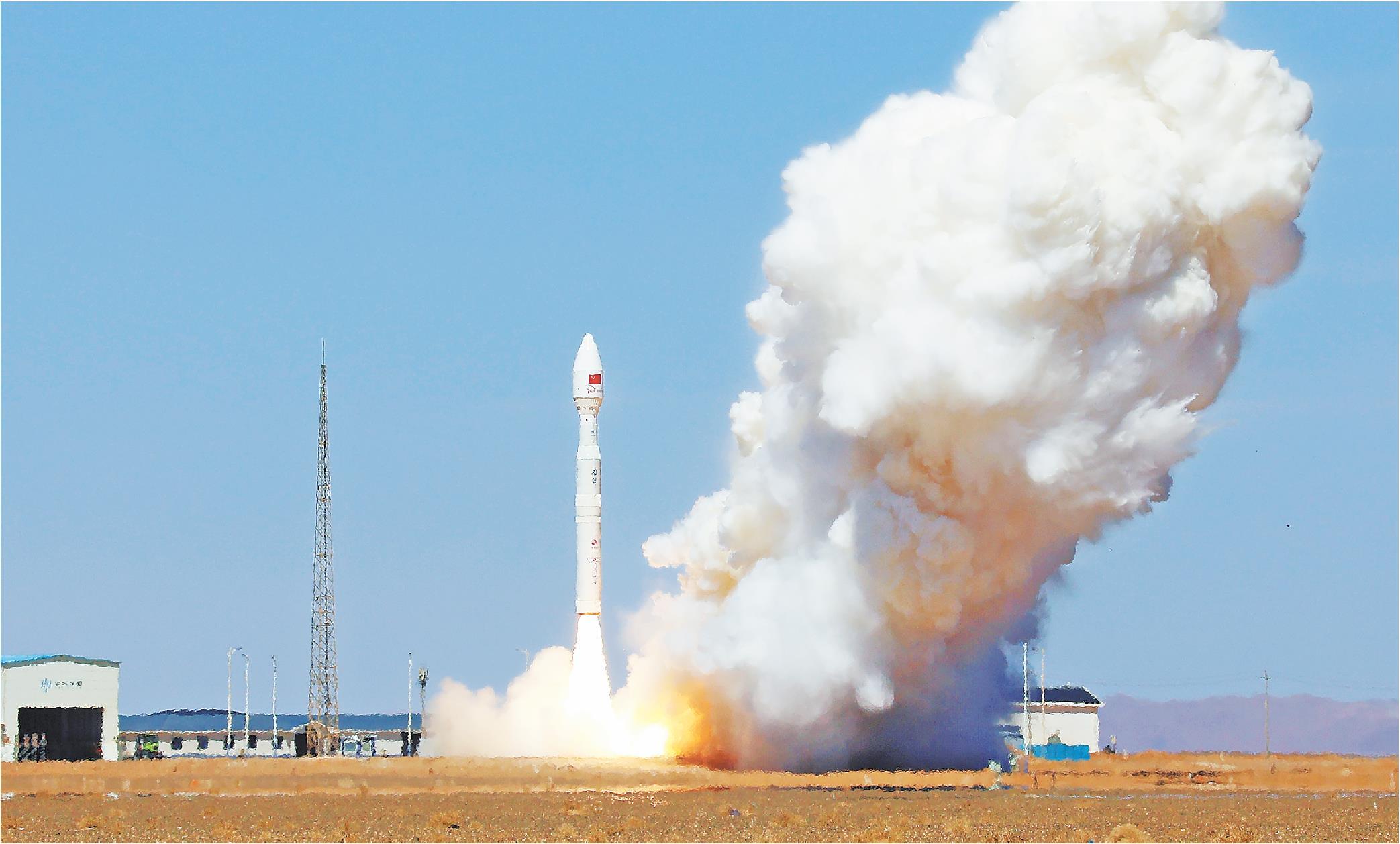 4月14日12时03分,我国成功将吉星高分07A02星等8颗卫星发射升空。(□新华社发)