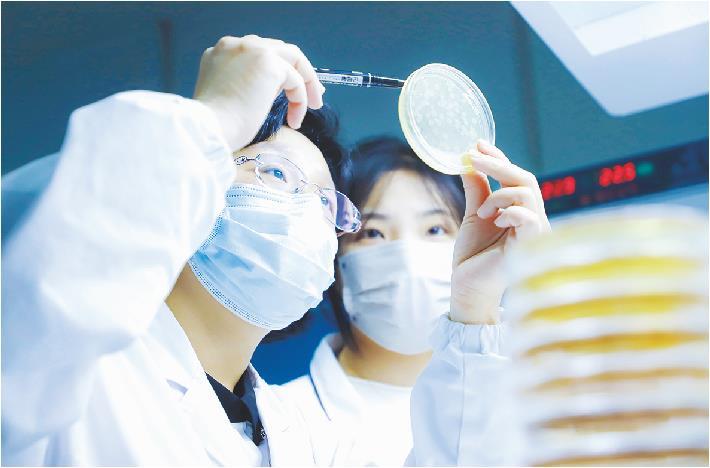 齐鲁制药微生物观察人员进行菌落计数