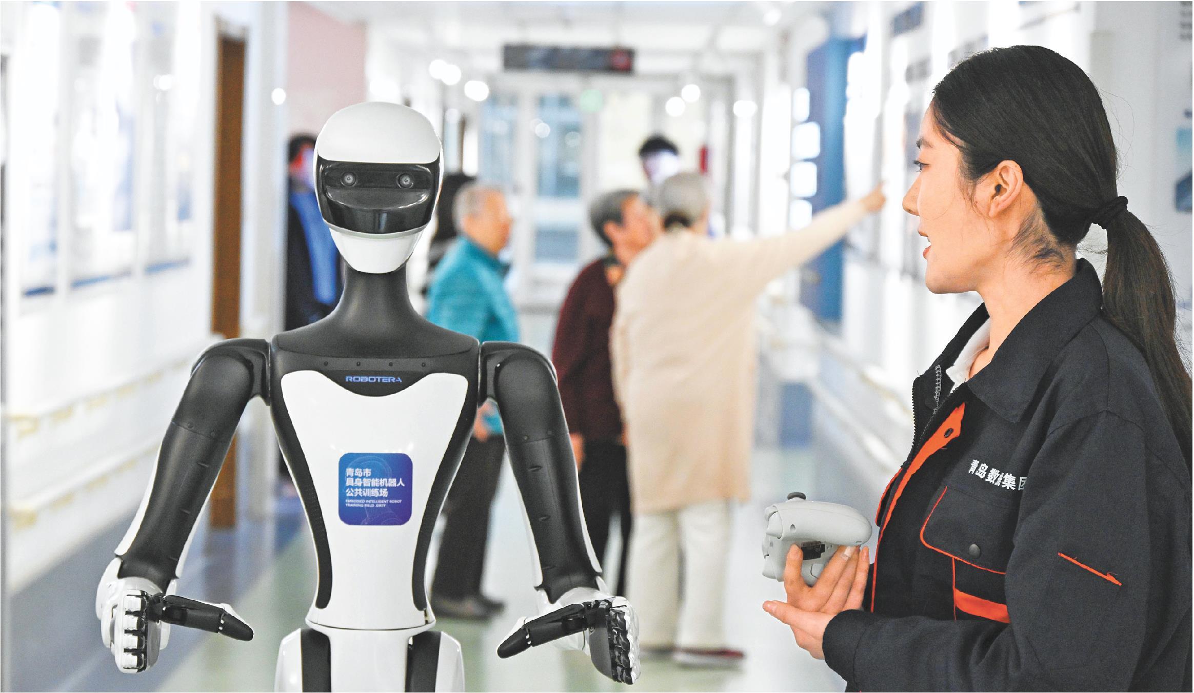 青岛市康养领域具身机器人暨智能康复产品训练验证中心通过“揭榜挂帅”机制,将硬件制造、软件算法、算力支撑等不同领域的进驻企业撮合在一起,共同得出“人机协同”的最优解:让机器人去承担夜间巡逻、物品递送等重体力、重复性劳动,把人类护工的精力释放到心理慰藉等机器无法替代的温情互动上。