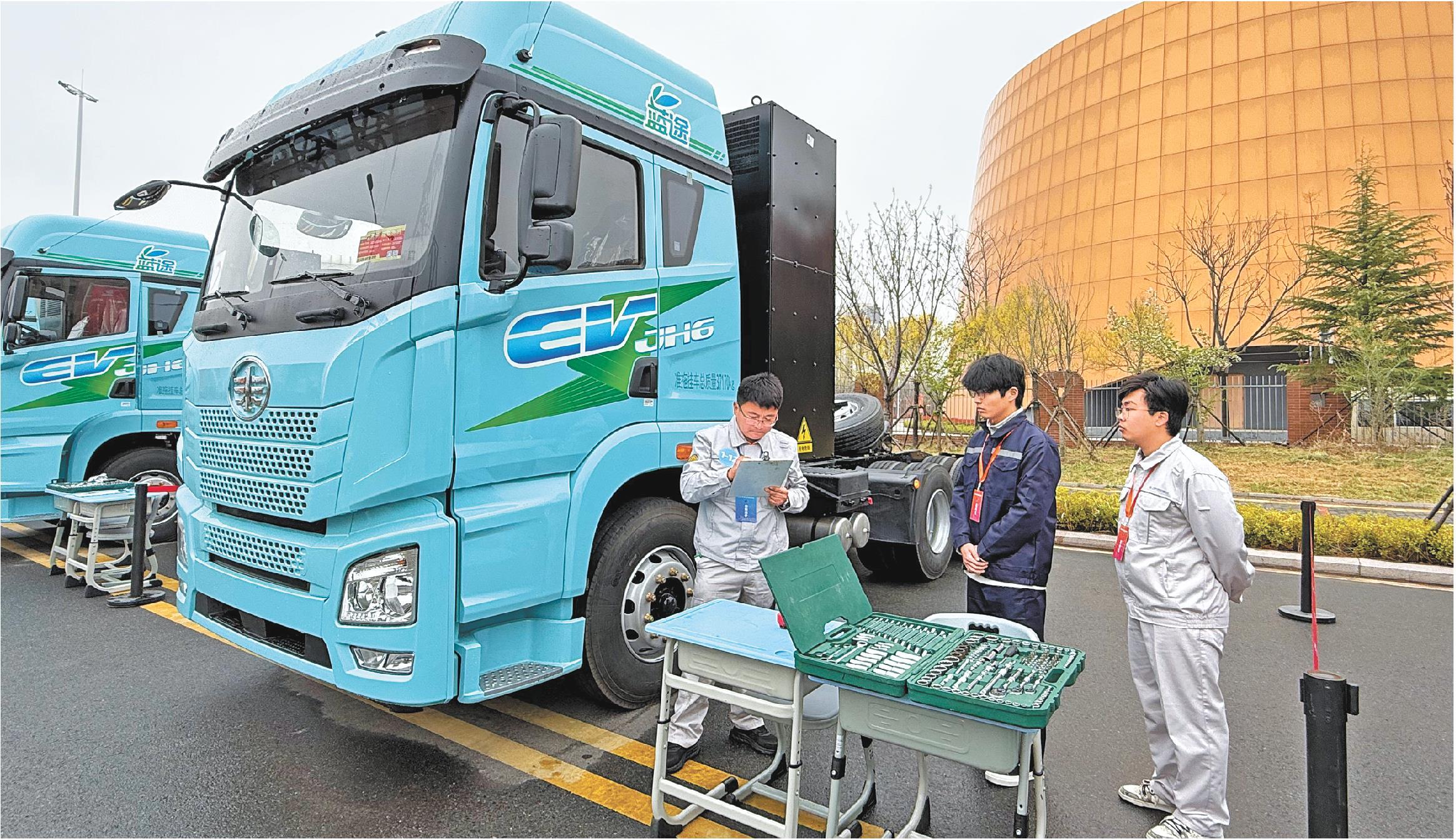 图为参赛选手参加新能源商用车整车装调工项目比赛。