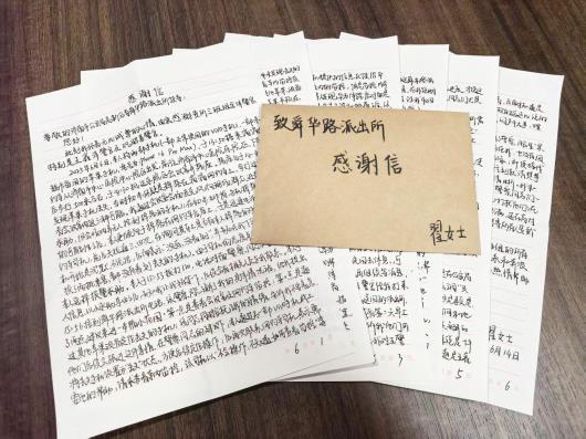 “在这次丢手机之前,我没有过报警经历,因此在报警时内心是忐忑的。但从第一个电话开始,不论接线的是哪位警官,他们都耐心地倾听我的诉求,认真为我寻找解决办法,站在我的角度考虑问题,帮我一步步向前推进。”感谢信最后,翟女士情真意切地写道:“这次报警,让我切切实实体会到了警察眼里‘案件无大小’这句话。”