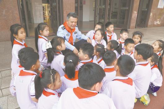 煤山社区警务书记王殿梓走进临沂第三实验小学开展安全防范宣传。 王川江 摄