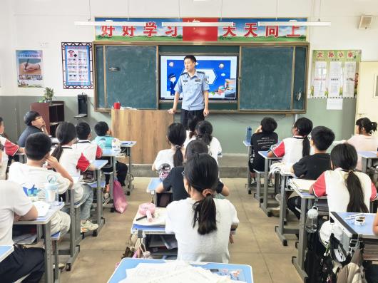 “暑假即将来临,咱们小学生一定要自觉遵守交通法规,过马路要先观察再通过,不要在马路上跑和玩……”6月27日,大孙小学法治副校长、嘉祥县公安局金屯派出所副所长李玉走进大孙小学,面对面宣讲防交通事故、防溺水、防网络沉迷、反邪教、反诈骗等方面的知识,教育引导学生从我做起,从现在做起,争做知法、守法、用法的小公民。