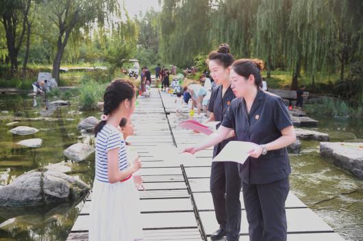 近日,潍坊市潍城区人民法院走进辖区大于河风景区开展生态环境保护普法宣传活动。活动现场,干警们向来往群众分发宣传手册,讲解生态环境保护的重要性,普及环境保护相关法律法规及破坏生态环境需要承担的法律后果,引导人民群众增强生态环境保护意识,共同守护青山绿水蓝天净土。