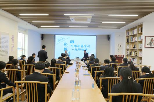 赵老师首先提到了交流前在检察长陪同下参观办案工作区等场所的感受。他特别注意到了报警设备、墙壁干湿温度计、计时器等细节,坦言以前与司法机关接触并不多,但在参观了“东检·心禾”未成年人司法保护中心后,了解到一个基层检察院也为推动国家法治进程贡献了“捕诉前品行调查”等实践样本后,很是欣慰。
