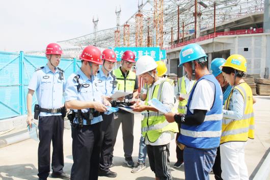 济南机场二期改扩建项目开工以来,场区派出所积极发挥“项目警长”作用,大力拓展“基层党建+平安建设”机制空间,通过组织或参加企业安全生产有关会议、开展联合检查考核等形式,针对安全生产、平安建设中存在的风险隐患及时摸底排查、会商研判,警企同心同德、携手打造“平安工地”,共建、共治工作取得明显成效。
