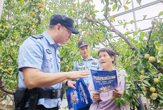 沾化民警向枣农宣传反诈知识。