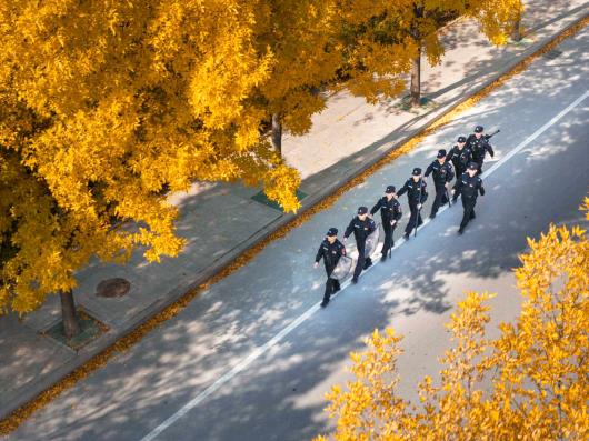 图为成武县公安局特巡警大队组织民辅警在“网红街”开展常态化步巡,维护治安秩序,提供便民服务,守护群众安心游玩。